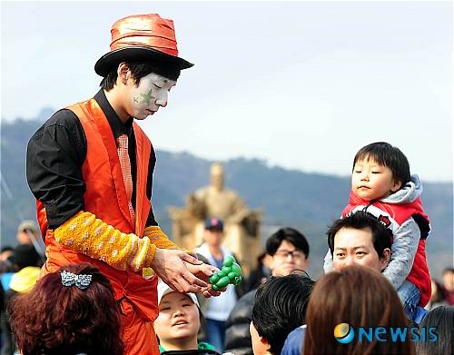 【서울=뉴시스】김인철 인턴기자 = 27일 오후 서울 종로구 해치마당에서 열린 '광화문 S-Day'에서 키다리 아저씨가 어린이들에게 풍선인형을 만들어주고 있다. 매월 마지막 주 일요일에 열리는 광화문 S-day는 Sunday 문화패스와 Story 투어, Street 이벤트 등 다양한 문화예술 체험 프로그램을 무료나 저렴한 가격으로 제공한다.