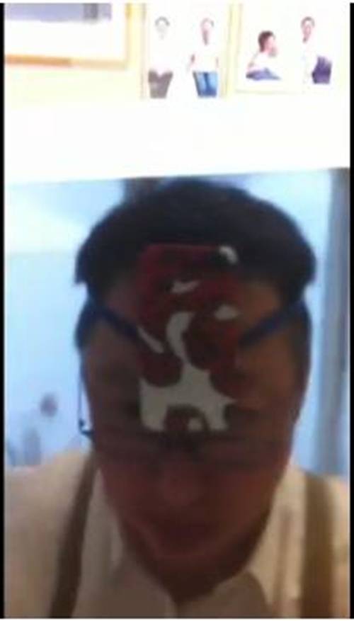 열심히 개봉을 푼 후 아이패드를 들었을 때 화면 액정에 비치는 모습에는 박 회장이 아이폰 밴드를 끼워 머리에 쓰고있는 모습이 공개됐다. 손이 두개여서 아이폰을 밴드에 끼워 머리에 달고 아이패드 2 개봉 과정을 직접 촬영한 것.