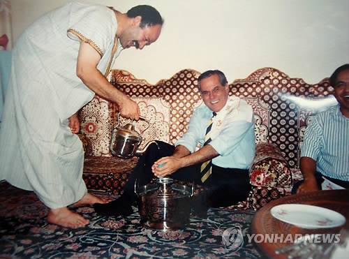 epa02676441 Handout photo released on 08 April 2011 shows Brazilian plastic surgeon Dr. Liacyr Ribeiro (C) during a visit in Tripolis, Libya, in 1994. Riberio, a noted Brazilian plastic surgeon, says that he performed middle-of-the night cosmetic surgery on Libyan leader Muammar Gaddafi deep inside one of the leader's bunkers 16 years ago, according to reports on 08 April 2011. EPA/LIACYR RIBEIRO MANDATORY CREDIT: LIACYR RIBEIRO EDITORIAL USE ONLY/NO SALES < 뉴스의 새 시대, 연합뉴스 Live >< 모바일 애플리케이션 >< 포토 매거진 >< 저작권자(c)연합뉴스. 무단전재-재배포금지. >