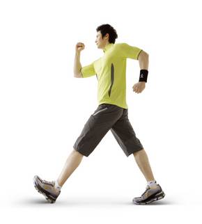 2. 팔을 흔드는 거리도 앞뒤가 같고 각도는 앞뒤로 각각 15도에서 20도, 무릎은 약간 앞으로 부드럽게 굽힌다.
