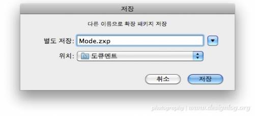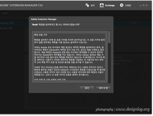 저장한 폴더로 이동해서 확장패키지 파일인 'Mode.zxp' 파일을 더블 클릭해 어도비 확장프로그램으로 설치합니다. 아래와 같이 자동적으로 'Adobe Extension Manager CS5'가 실행되면서 설치과정이 진행됩니다.