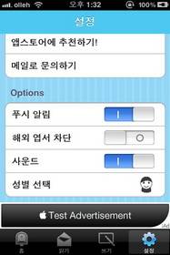 이 밖에도 설정에서는 해외엽서 차단 설정도 있다. 이 설정을 켜면 해외 이용자들이 보내는 엽서를 받을 수 없다. 그리고 비속어 필터기능이 있어 기분 나쁠 수 있는 말들은 자동으로 걸러진다. 성별 변경도 가능하다.