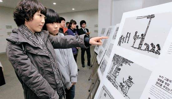 '북(北)정치범수용소 전시회'가 26일부터 다음달 9일까지 부산 동아대 박물관에서 동아대·한동대 학회 주관으로 열린다. 북한 주민의 탈북을 돕다 7년간 수용소에 수감됐던 북한 미술가 권효진씨가 정치범수용소 내의 비극적인 생활사를 담은 펜화 42점을 비롯해 사진·영상·포스터·문헌 등이 선뵌다.