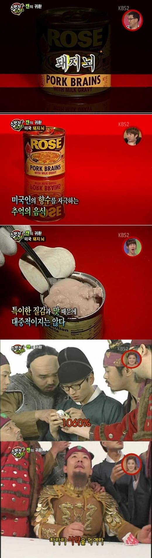 KBS '스펀지'가 돼지 뇌 통조림의 맛을 공개했다.