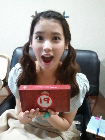 올해로 19번째 생일을 맞은 아이유는 자신의 미투데이에 "인기가요로 배달 온 떡! 다른 출연자와 스태프 분들과 함께 맛있게 먹었습니다. 감사합니다"라는 글과 함께 사진을 올렸다.