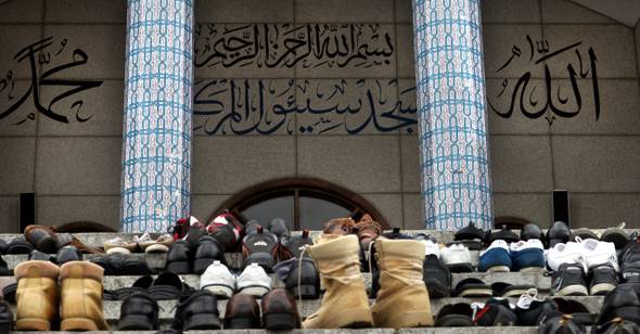 무슬림은 금요일에 합동예배를 한다. 매주 금요일 오후 1시 서울 용산구 한남동 한국 이슬람 서울중앙성원은 아시아·아프리카·유럽의 이주 무슬림과 검은 눈동자의 한국인 무슬림이 뒤섞인다. 600~800여명이 '주마'(금요예배)에 참석한다. 그들은 벌떼가 웅웅대듯 "아민"이라고 말한다. '주마'가 열린 지난 4월22일 서울중앙성원 사무처 사람들은 정신이 없었다. "이슬람을 알고 싶다"는 사람들이 계속 찾아왔다. 그 가운데 한국인 여대생 2명도 있었다. 그들은 미니스커트를 입고 왔다. 사무처 직원이 내준 긴치마를 입고 그들은 '마스지드'(이슬람 성원)에 올라갔다.