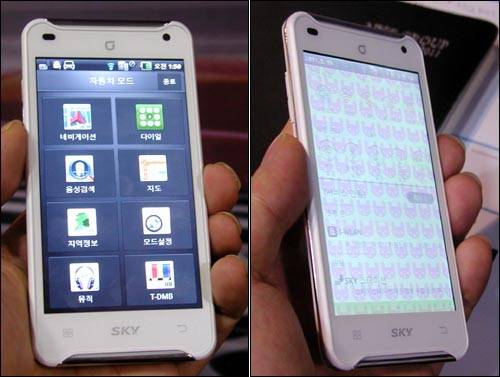 이날 베가 레이서 못지않게 눈길을 끈 것은 오는 6월 출시 예정인 5인치 태블릿폰 '베가 N°5(IM-T100K)'였다. 역시 1.5GHz 듀얼코어 CPU를 장착했으며 태블릿처럼 3D 내비게이션을 기본 제공하고 전자책, 동영상 등 멀티미디어 활용에 적합하게 만들었다.