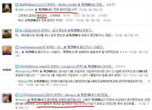 ▲ SNS, 온라인 등을 통해 사용자들이 최근 까지도 "쇼 옥션머니의 종료 사실을 몰랐다"며 전해오고 있다. |