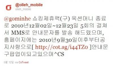 ▲ 서비스 종료 통보에 대한 KT 측의 트위터 공지글. |