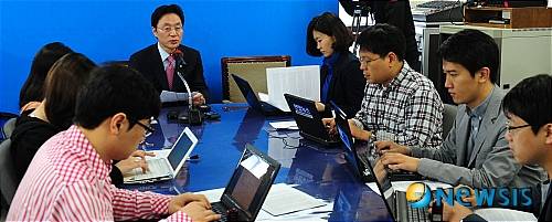 【서울=뉴시스】박주성 기자 = 한나라당 정두언 의원이 22일 오전 서울 여의도 당사에서 기자간담회를 갖고 전당대회에 불출마 하겠다고 이야기하고 있다.