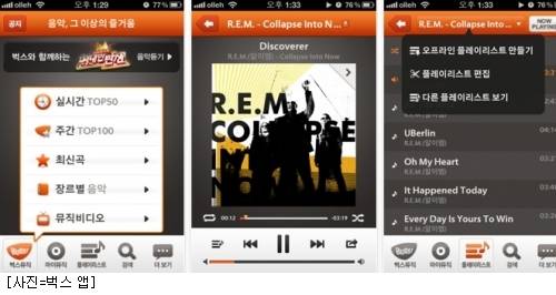 3종의 뮤직 앱 모두 온라인과 연동이 되기 때문에 스마트폰에서 구입한 음악을 PC에서도 들을 수 있고 트위터, 페이스북, 미투데이 등 소셜네트워크(SNS)로 보내 지인들과 공유할 수 있는 것도 공통점이다.