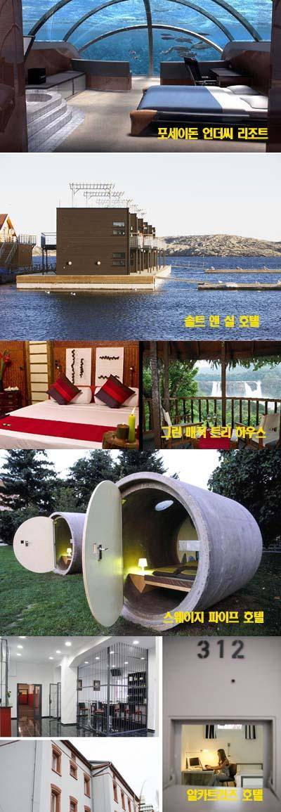 [서울신문 나우뉴스]해외로 여행을 떠날 때 장소만큼 중요한 것이 바로 숙박을 해결할 호텔이다. 미국의 한 사이트가 최근 세계의 특이한 호텔 10을 선정해 보도했다.
