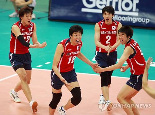 (서울=연합뉴스) 28일 수원실내체육관에서 열린 2011월드리그 국제배구대회 대륙간 라운드 D조 1차전에서 박기원 감독이 이끄는 남자대표팀이 강적 쿠바를 3-0으로 완파했다. 27년만에 쿠바를 물리치는 쾌거다. 2011.5.28 < < FIVB 제공 > >
