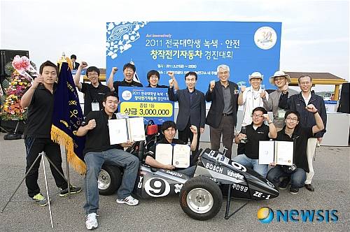 【서울=뉴시스】서상준 기자 = 교통안전공단이 주최한 '2011 전국 대학생 녹색·안전 창작 전기자동차 경진대회'에서 영남대학교 천마DM팀이 종합우승을 차지했다.