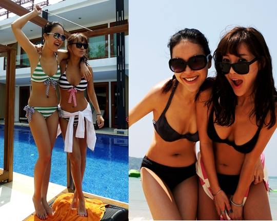 지난해 비키니 화보를 공개해 폭발적인 관심을 받은 바 있는 연예계 절친 가수 백지영과 유리다.