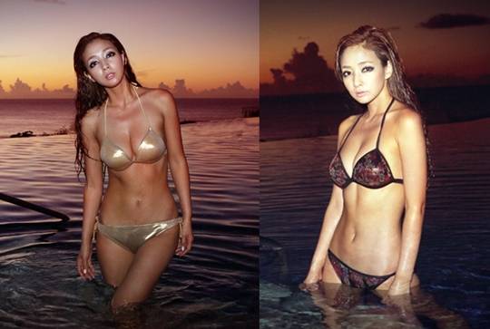 특히 운동으로 단련된 글래머스한 라인은 석양이 지는 해변과 어우러져 몸매를 더욱 육감적으로 보이게 했다.