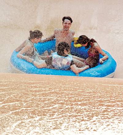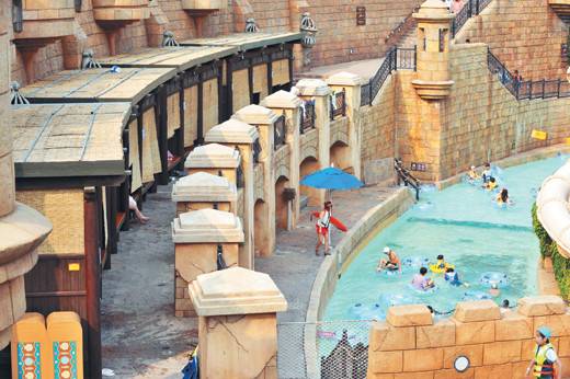 높이 6m 위에 설치된 해골 모형의 물탱크에서 수톤(t)의 물이 한꺼번에 쏟아져나와 주위를 물에 흥건히 젖게 만드는 어드벤처풀은 온 가족이 함께 즐길 수 있는 공간.