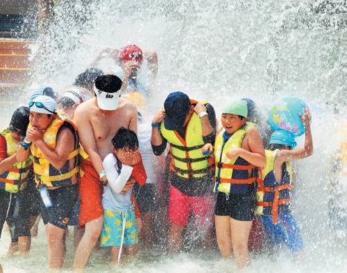 ▲ 물놀이로 더위를 식히고 있는 고객들. |