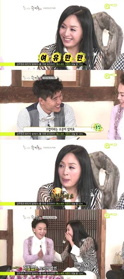박해미는 6월 24일 방송된 QTV '수미옥'에 출연해 신체 사이즈를 솔직히 밝히며 화끈한 입담을 뽐냈다.