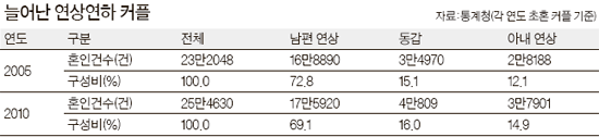 [중앙일보 채윤경] 지난해 결혼한 신모(41)씨는 대학 강사다. 캐나다 유학을 다녀온 박사 학위 소지자다. 그녀가 배필로 맞은 남성은 두 살 연하의 전문대 졸업생. 7급 공무원이라는 안정된 직업에도 처음엔 친정 반대가 심했다.