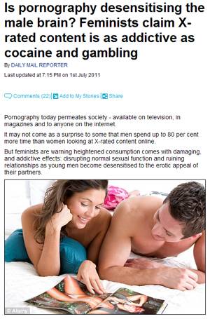 "'야동(야한 동영상·포르노)'은 마약이나 도박만큼 중독성이 강하다. 심지어 정상적 성관계도 망칠 수 있다"영국 일간 데일리메일은 1일 포르노물의 중독성이 매우 강한 것은 물론 상대방에 대한 감정을 무뎌지게 해 정상적인 성관계에까지 악영향을 미칠 수 있다고 전문가의 말과 최근 언론 설문조사를 인용, 보도했다.이 매체에 따르면, 최근 포르노물이 TV와 잡지, 인터넷 등을 통해 급속하게 전파되면서 이에 대한 중독 현상과 온갖 부작용이 나타나고 있다. 특히 온라인 포르노물을 검색하는 데 남성들이 여성보다 훨씬 많은 시간을 쓰는 것으로 조사돼 남성들의 포르노 중독이 우려된다고 이 매체는 전했다.'포르노의 신화(The Porn Myth)'라는 책을 출간한 사회 비평가 나오미 울프(Wolf)는 "성 상담사 등을 조사한 결과, 포르노에 중독된 젊은이들이 같은 세대 젊은이들 가운데서도 조루(早漏)에 시달리는 비율이 높았다"고 이 매체에 전했다.영국 BBC 라디오가 진행한 최근 설문에서도, 영국 18~24세 사이 젊은이 1000명 가운데 온라인으로 포르노물을 찾는 남성은 10명 중 8명으로, 여성(10명 중 3명)보다 중독 비율이 높았다. 더구나 남성들은 일주일 평균 2시간 정도를 포르노물을 찾는 데 소비했지만, 여성은 15분 정도로 조사됐다.영국 포트만(Portman) 클리닉의 헤더 우드(Wood) 박사는 "일주일에 10시간 이상 인터넷 포르노물을 찾는 중독자들은 성관계에서 보다 강박적인 성향을 취할 가능성이 크다"고 BBC에 말했다.더구나 이 같은 포르노 중독에 빠진 사람은 야한 영상을 보면서 자연스럽게 도파민이나 옥시토신 같은 화학물질이 분비돼, 마약이나 도박처럼 심한 중독 상태에 빠진다고 전문가들은 분석했다.울프는 "이런 도파민 효과 탓에 젊은이들의 포르노물 중독 비율은 높아지게 된다"며 "포르노물 중독자들은 더 야한 동영상을 찾게 되는 경향이 강해 결국 자신을 파멸시킬 수 있다"고 경고했다.