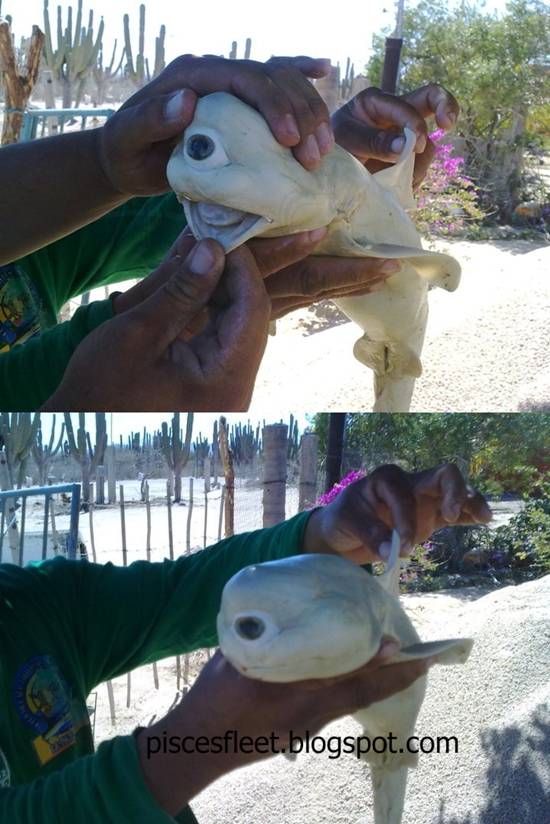 이 외눈박이 상어는 멕시코 해안에서 한 어부에게 잡힌 황소상어 어미 뱃속에서 발견됐다. 사진은 이 지역에 들른 관광객이 촬영한 것으로 알려졌다.