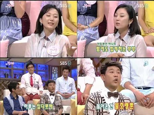 7일 방송된 SBS '스타 부부쇼 자기야'에 출연한 김나운은 MC 김원희의 "남편과 모닝샤워를 한다고 들었다"라는 말에 수긍하며 샤워에 얽힌 이야기를 공개했다.
