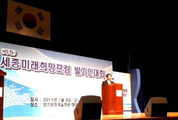 이 자리에서 세종미래희망포럼 공동대표로 추대된 육동일 충남대 교수는 "세종시의 필요성을 인정하고 뒷받침할 대통령과 정치지도자가 선출돼야만 세종시가 차질없이 추진될 수 있다"고 말했다. 육동일 교수는 지난해 한나라당이 대전시장 후보로 영입했던 인물이다.