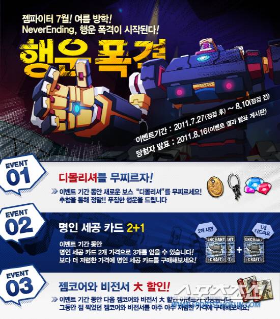 이번 업데이트를 기념해 '디몰리셔'를 무찌른 횟수에 따라 아이템 선물을 주며, 다양한 '비전서'와 '젬코어' 아이템을 할인된 가격에 제공한다.남정석 기자 bluesky@sportschosun.com