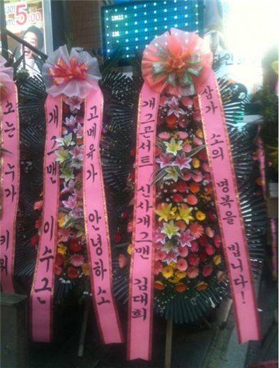 또 이수근이 보낸 화환 옆에는 '소는 누가 키워'가 보여 개그맨 박영진이 보낸 화환임을 짐작케 한다.