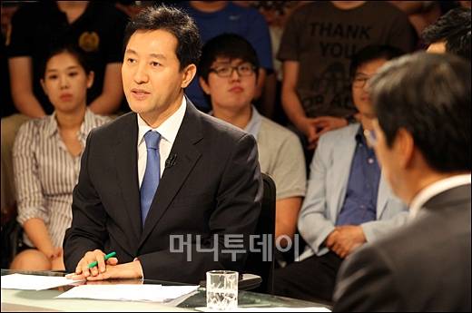 오세훈 서울시장이 12일 오후 SBS 시사토론에 출연, 지난해 6 · 2 지방선거 이후 1년여 동안 양측이 첨예하게 갈등을 빚었던 무상급식 지원범위, 주민투표의 적법성, 주민투표 반대운동의 정당성 등의 쟁점들을 놓고 곽노현 서울시 교육감과 열띤 공방을 벌이고 있다.