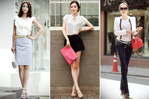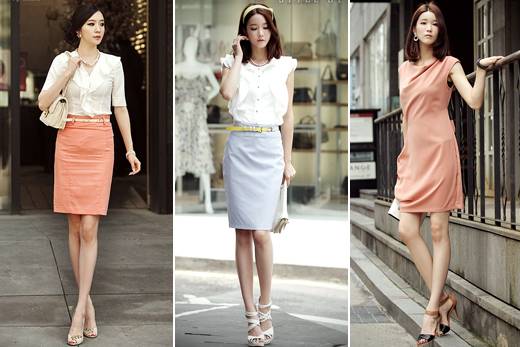 살짝 파인 브이넥 프릴 블라우스에 시원한 길이의 팬츠 정도로 코디하면 지나치지 않은 적절한 섹시미를 연출할 수 있다. 적절한 길이의 쉬폰 원피스 또한 좋은 아이템이다. 스커트 길이가 조금 짧은 편이라면 네크라인은 많이 파이지 않은 디자인으로 선택하는 것이 현명하다.