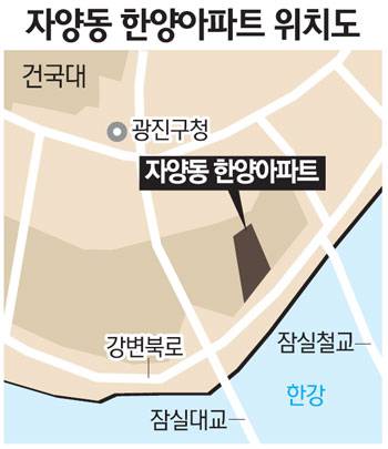 1일 부동산업계에 따르면 자양동 한양아파트는 최근 정밀안전진단에서 '조건부 재건축'인 D등급을 받았다. 이에 따라 주택재건축정비계획 수립 등 본격적인 재건축 추진이 가능해졌다. 한양아파트는 구의ㆍ자양유도정비구역 5구역에 속해 있는 444가구 6개동 12층 규모의 중층 노후 아파트 단지다. 한강조망이 가능하고 지하철 2호선 강변역과 가까운 것이 장점이다.