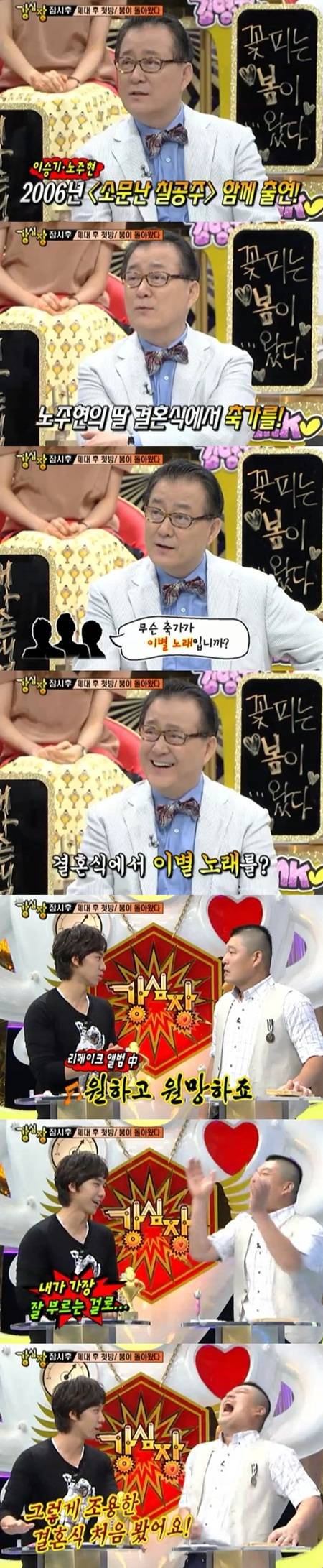 노주현은 9월 6일 방송된 SBS '강심장'에 출연해 지난 2006년 KBS 2TV '소문난 칠공주'에서 함께 연기했던 이승기가 자신의 딸 결혼식에서 축가를 불렀다며 당시 이야기를 전했다.
