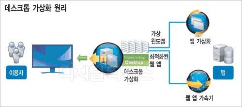 정보통신산업진흥원이 국내 소프트웨어(SW) 산업 종사자, 개발자, SW기업 대표 등 600여명을 대상으로 설문조사를 한 결과 2011년 SW 최대 기술이슈로 가상화가 선정됐는데요, 다양한 가상화 영역 중에서도 가장 활발히 상품화되고 있는 분야가 바로 `데스크톱 가상화'입니다.