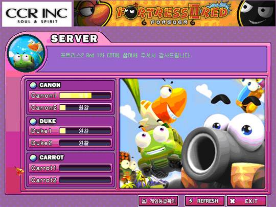 캐논, 듀크, 캐롯 포트리스를 한번 씩은 해보았던 유저라면 친근한 서버네임일 것이다. 인기 캐릭터의 네임을 따서 만든 서버 네임은 기존 유저들에게 익숙한 느낌을 준다.