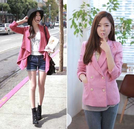 아우터를 핑크톤으로 결정했다면 심플한 화이트 티셔츠나 블라우스를 이너로 매치하고 데님숏츠나 스키니진을 하의로 착용해 귀여움을 살리면서도 젊고 트렌디한 감성을 더하는 것이 적합하다.