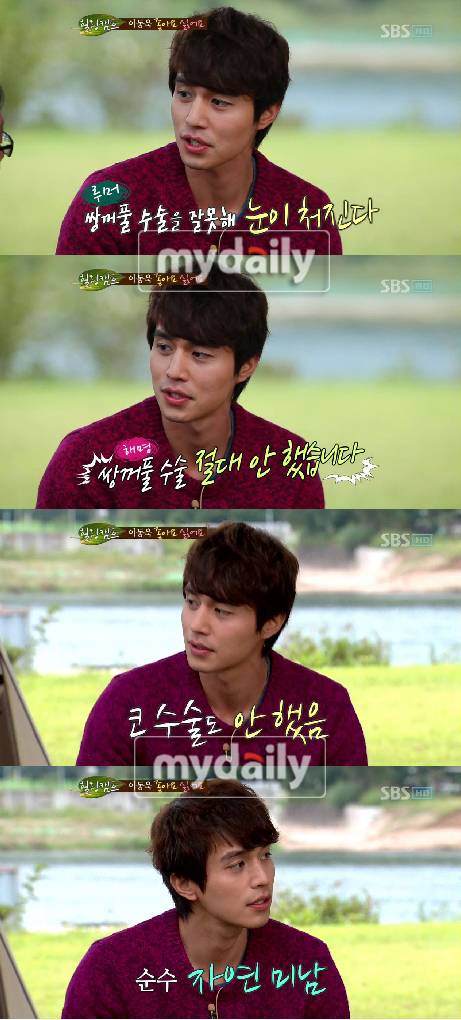 이동욱은 26일 오후 방송된 SBS '힐링캠프, 기쁘지 아니한가'(이하 '힐링캠프')에 출연해 "쌍꺼풀 수술 잘못해서 눈 쳐진다는 소리도 들어봤다. 이 자리를 통해 말하고 싶은데 (쌍꺼풀 수술) 절대 안 했다"고 전했다.
