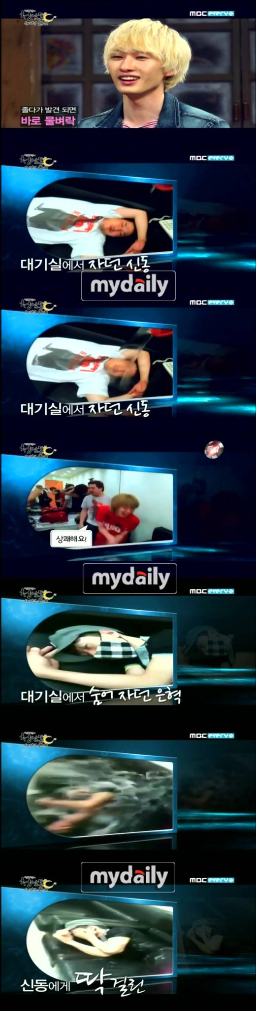 이어 동해와 신동이 '상쾌해요 게임'에 걸려 물벼락을 맞는 장면이 공개됐다. 신동은 난데없는 물벼락에 어리둥절한 표정을 지었지만, 이내 '상쾌해요 게임' 때문이란 걸 알고 졸린 표정으로 "상쾌해요"라고 말해 웃음을 줬다.