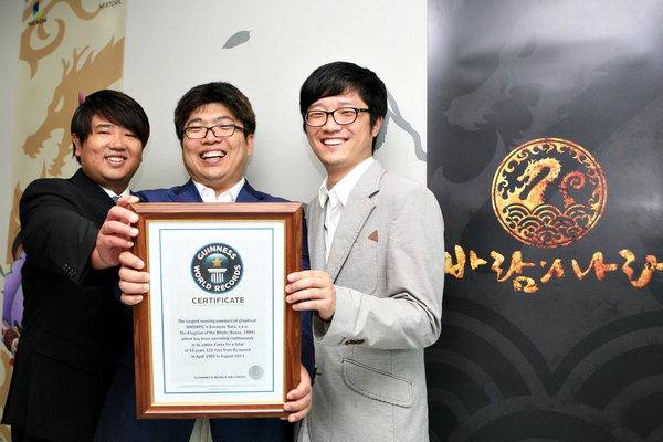 넥슨의 인기 MMORPG <바람의나라>가 '세계에서 가장 오랜 기간 상용화된 그래픽 MMORPG'로 기네스북에 올랐다.