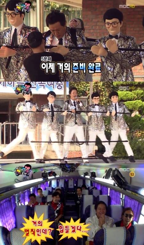 인형은 정준하와 엮여 있어 행동을 그대로 따라하게 제작됐다. 정준하는 5분여의 준비 시간을 갖은 후 인형을 몸에 엮은 채 무대에 올라 '정주나요'를 열창했다. 지켜보던 멤버들은 "이거 벌칙 아니냐"고 말해 웃음을 자아냈다.