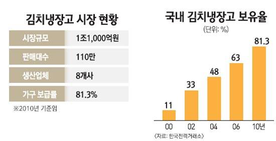 가전업계의 한 관계자는 "김치냉장고가 2001~2002년 동안 폭발적으로 판매되고 제품 교체주기가 8~10년인 점을 감안하면 교체 수요가 크게 증가할 것"이라며 "특히 최근 김치냉장고 시장의 40~50% 비중을 차지하는 스탠드형의 인기가 높아지고 있는 만큼 과거에 구입한 뚜껑형의 교체 수요가 기대된다"고 강조했다.