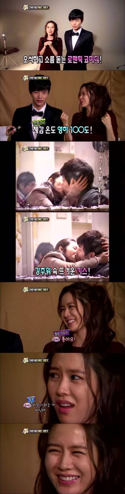 손예진은 "가장 기억에 남는 장면"을 묻는 리포터 김슬기의 질문에 "체감 온도 영화 100도였다. 근데 키스를 나누는 장면에서 옷을 찢어야 했다."며 당시 상황을 전했다.