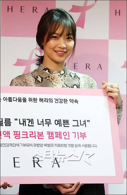 배우 신민아가 5일 오후 서울 청담동 헤라 부띠끄에서 열린 '신민아와 함께하는 헤라 핑크리본 기부' 행사에 참석하고 있다.