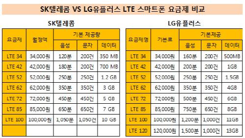 SKT vs LGU+..LTE 요금제의 차이점은?