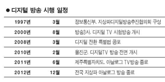 오는 2012년말로 지상파 아날로그 방송이 종료되고 2013년부터 디지털 방송이 본격적으로 시작되지만 국민 절반이 볼 수 없는 '반쪽짜리 디지털 방송'에 그칠 전망이다.