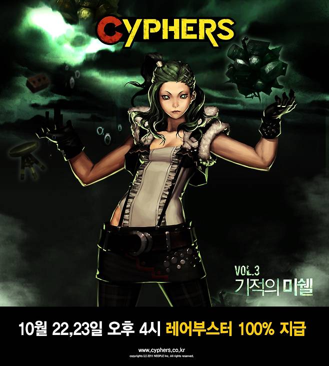 네오플, 던파 여성 보스 '미쉘 모나헌' 추가 주변 사물 조종하는 염력 활용한 기술 구사 네오플(대표 강신철 )은 20일 자사가 개발하고 서비스하는 3D 액션게임 '사이퍼즈(Cyphers)'에 신규 여성 캐릭터 '미쉘 모나헌(Michelle Monahun, 이하 미쉘)'을 추가하고, 이와 함께 다양한 이벤트를 실시한다.