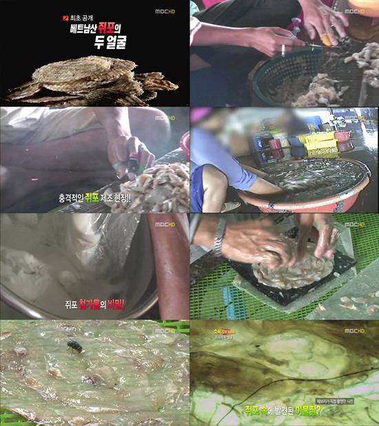 한 제보자는 대형마트에서 구입한 쥐포 30개 중 무려 3개의 쥐포에서 머리카락을 발견했다. 벌레가 죽은 채 굳어있는 쥐포도 있었다. 문제의 쥐포 고향은 베트남이었다. 전문가는 "일부 벌레들은 몸에 반쯤 정도가 특정히 굳어있는 물질에 잠겨 있었다. 이것은 분명히 제조 과정 중에 벌레들이 남아들어 이 안에 오염으로 나타나고 있는 것이다"고 밝혔다.