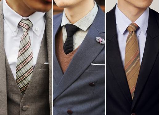 수트를 입었을 때 가장 먼저 체크하는 부분이 바로 네크라인 부분이다. 재킷과 셔츠 그리고 넥타이가 한곳으로 모이는 네크라인과 가슴 앞쪽 부분은 각각의 아이템끼리 컬러와 패턴의 조화를 잘 이뤘다면 세련된 수트 패션의 90%를 완성했다고 해도 과언이 아니다. 그만큼 칼라와 넥타이가 부분이 얼마나 잘 매치됐는지를 가장 신경 써야 한다는 뜻이다.