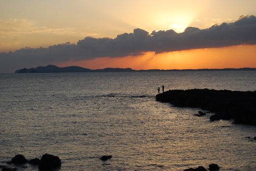 해질녘 대평포구. 갯바위에 낚시꾼들이 보인다. 멀리 정답게 서 있는 형제 섬과 그 너머 가파도가 아스라하다.